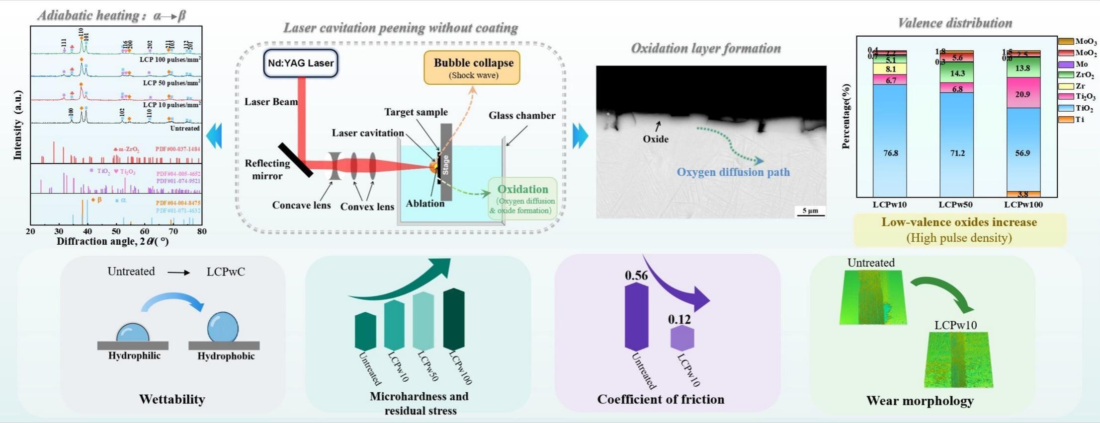 Laser cavitation peening without coating; Ti-30Zr-5Mo alloy; Tribological behavior; Surface oxidation; Phase transformation![]()