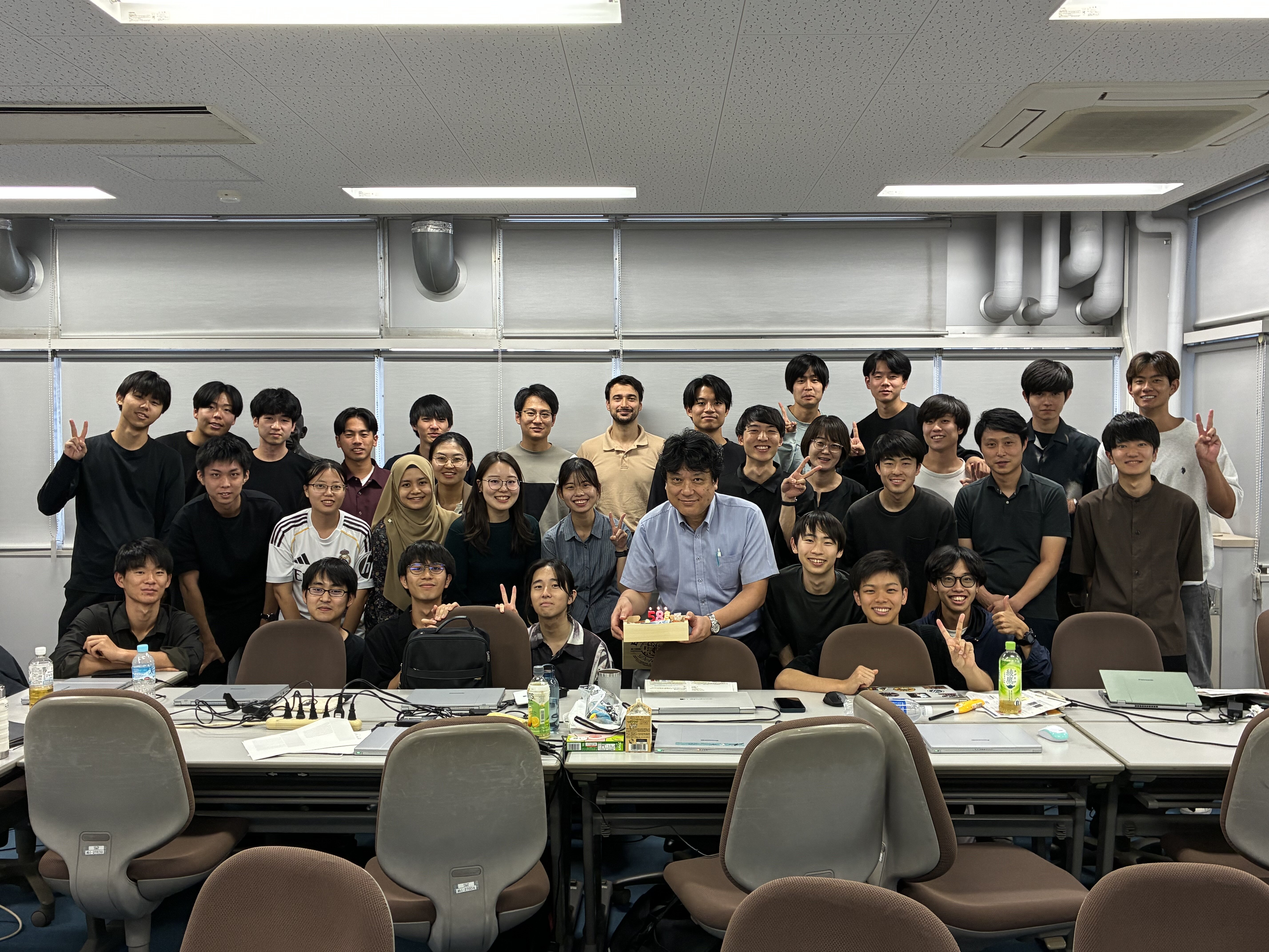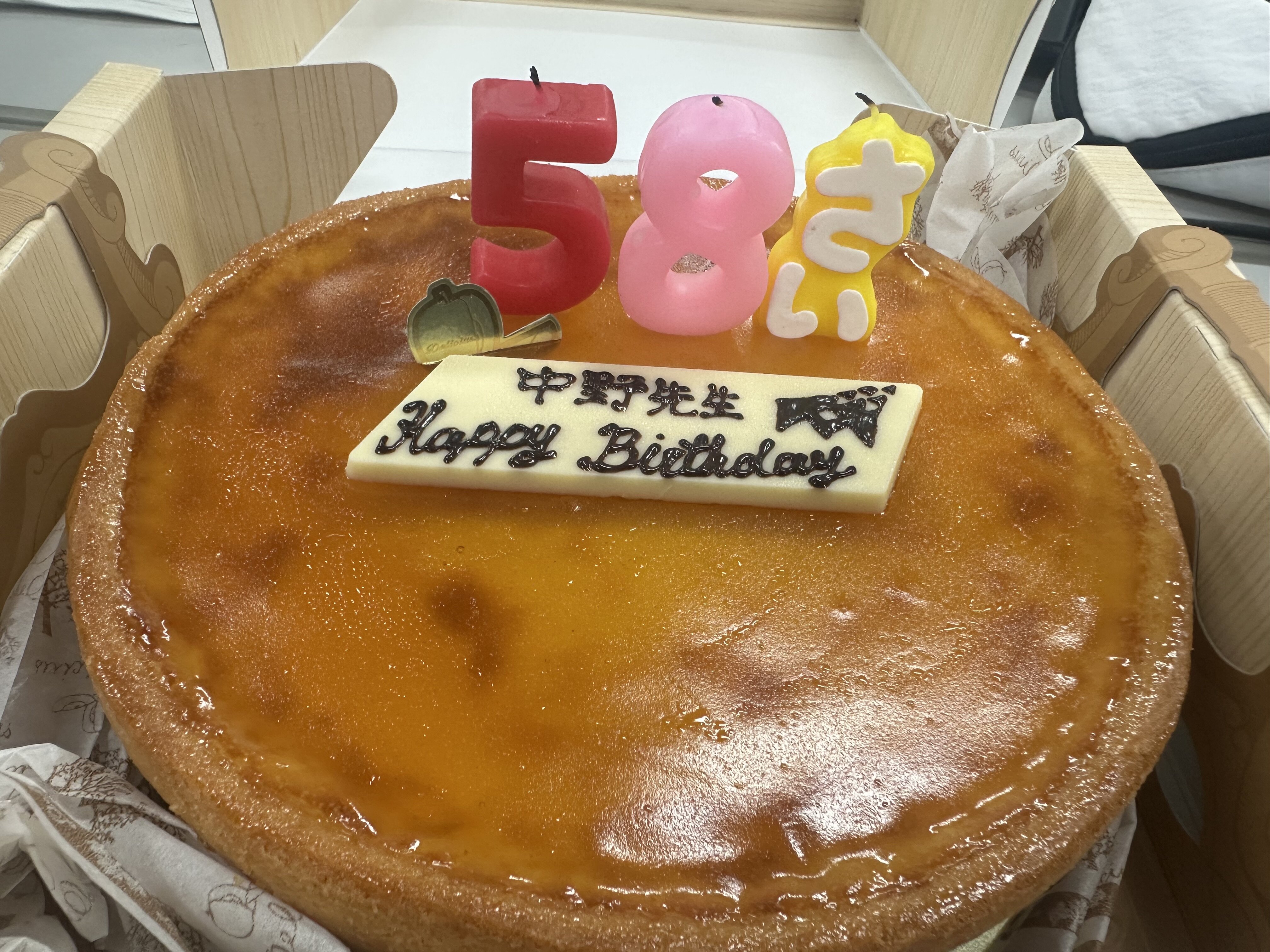 2025年9月22日に中野先生が58歳の誕生日を迎えられました。研究室のメンバー一同でケーキを用意し、日頃のご指導への感謝を込めてお祝いしました。